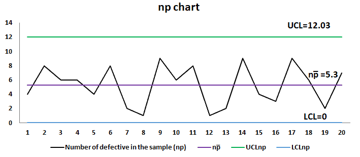 P 관리도는 불량률을 추적한다면 NP 관리도는 불량 항목 수를 추적한다.