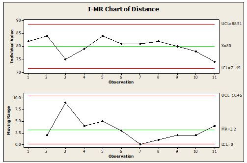 I 관리도는 개별 데이터 포인트를 표시하고 MR 관리도는 연속 관측치 간의 이동 범위를 추적하여 단기 변동을 측정한다.
