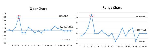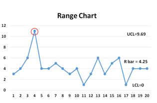 과정 평균값은 변함이 없더라도 분산이 증가하면 관리한계를 벗어날 수 있으므로 과정 변화는 평균치 관리도가 아닌 범위 관리도에 의해서만 발견된다.