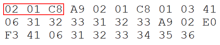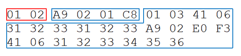 List 타입이 아닌 경우에도 규칙은 동일하다. A9는 Length-byte가 1개인 U2를 나타내고 41은 Length-byte가 1개인 ASCII를 나타낸다. Length-byte의 각각의 값은 2와 6이므로 data-value영역의 byte 개수가 2개, 6개가 있을 것을 확인할 수 있고 해당 영역의 byte를 변환하면