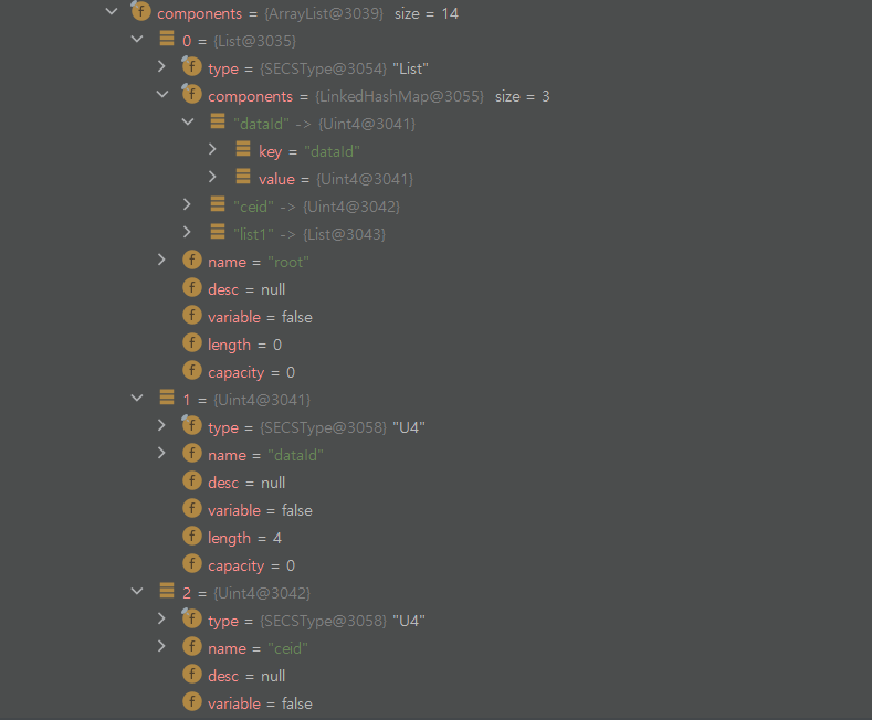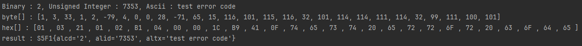 위 사진이 SECS 인터페이스이고 인터페이스를 SECS 프로토콜을 이용해 byte로 변환 및 16진수로 출력한 값이 아래 사진입니다.